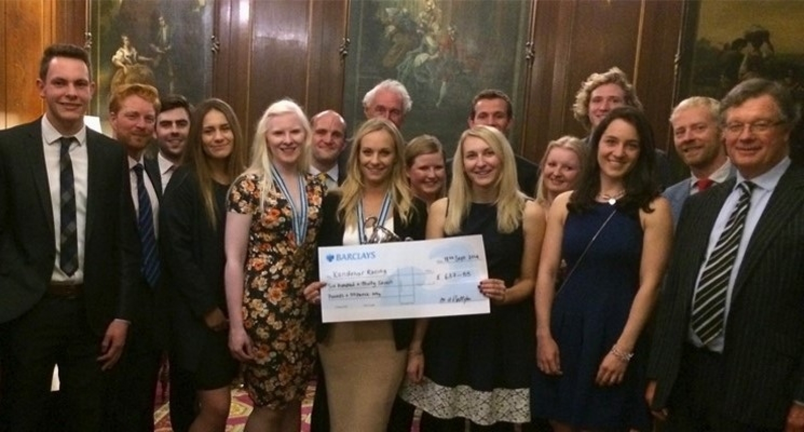 Pictured at the handover are, front, from left: Nick Moynihan, Daniel Poth, Robert Poth, Jamie Page, Richard Wilkinson, Caroline Powell (Olympic silver and bronze medallist), Kelly Gallagher MBE (gold medallist), Matt Shepherd, Charlotte Evans MBE (gold medallist) and Kirsty Hatcher (with cheque).